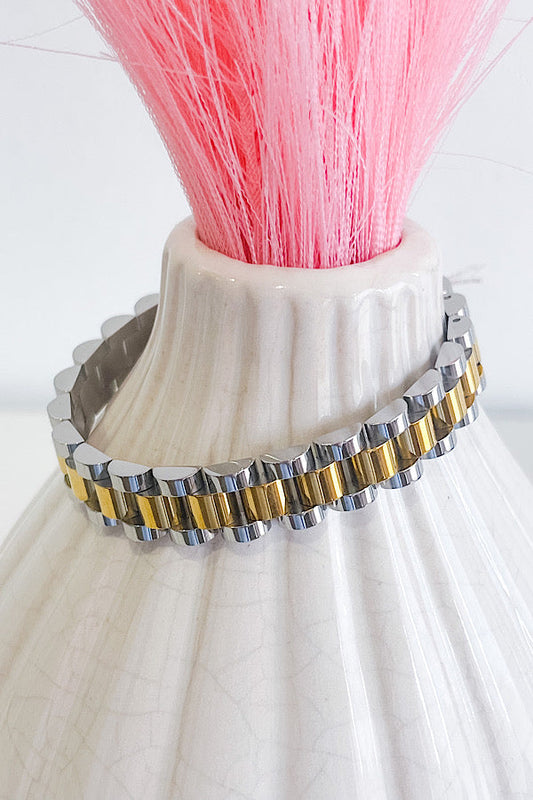 Natural Elements Mixed Metal Wide Watch Band Bracelet
