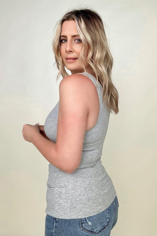 FawnFit Scoop Neck Ribbed Tank Bodysuit with Built In Bra