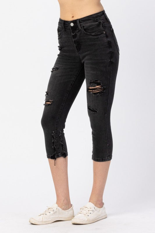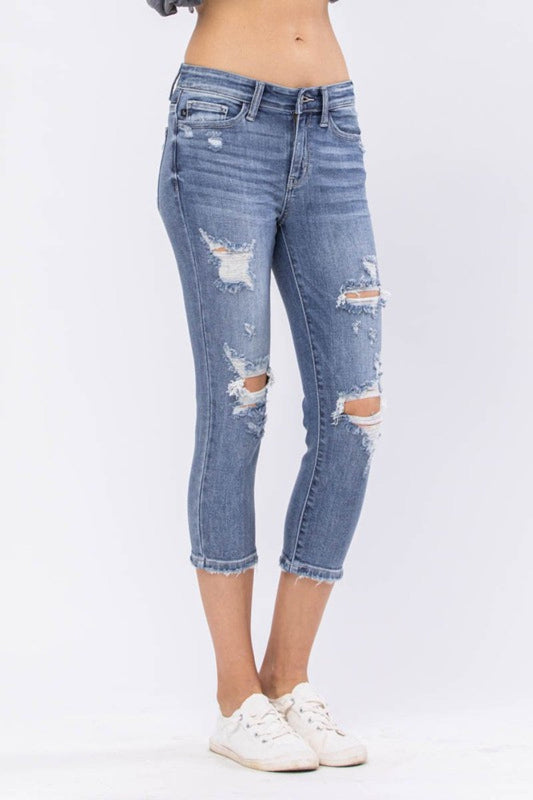 Judy Blue Mid-Rise Destroyed Denim Capri
