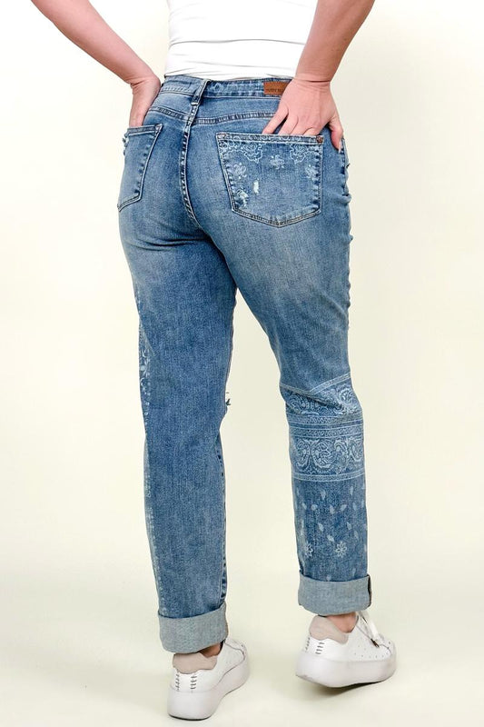 Judy Blue Mid-Rise Destroy & Paisley Print Boyfriend Jeans