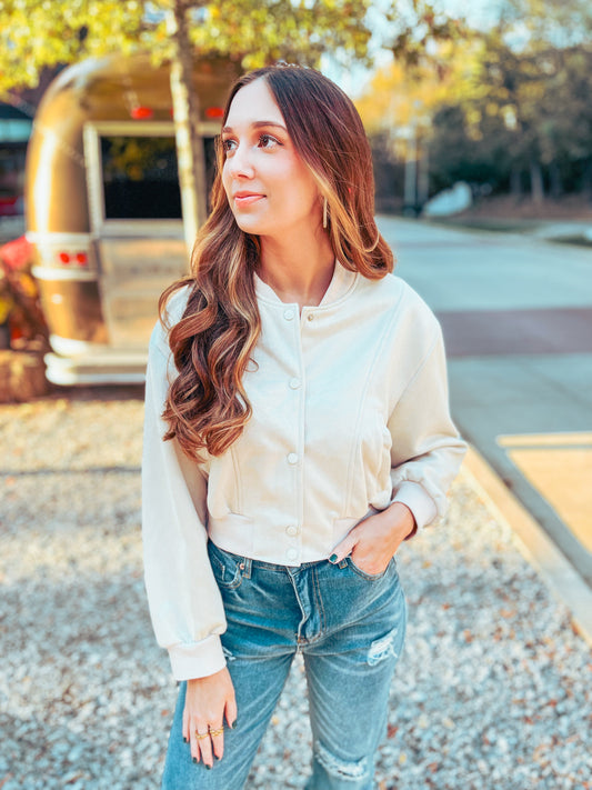 So Slick Cream Suede Bomber Jacket - ETA 1/15