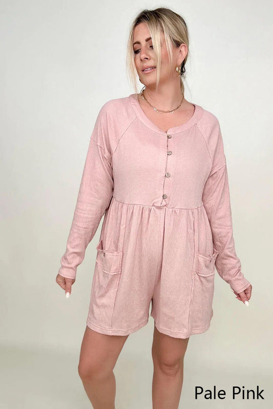 Heyson Comfy Knit Button-Down Long Sleeve Romper