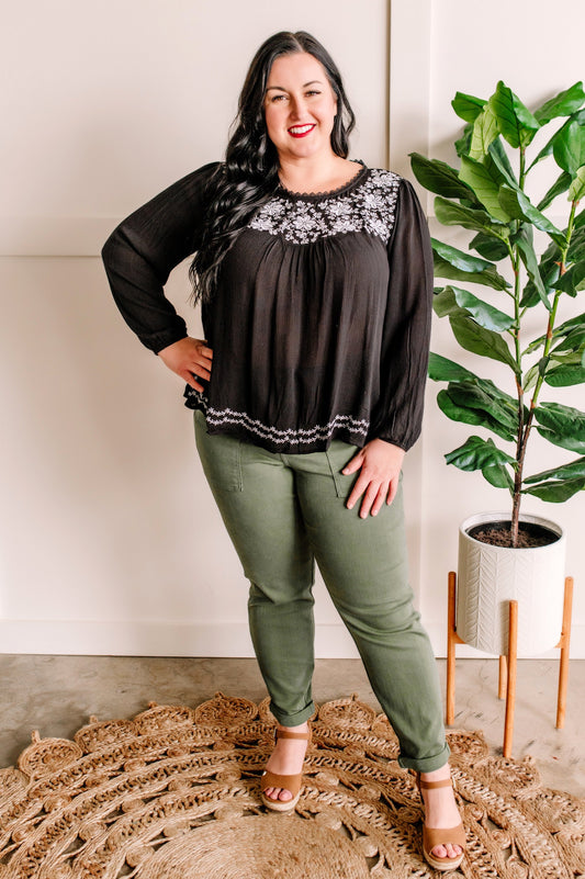 Savanna Jane Black Blouse With Floral Embroidery