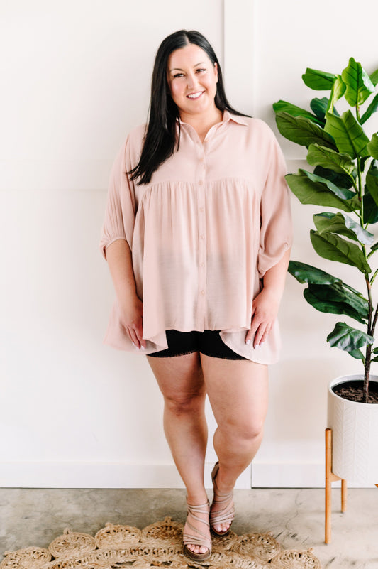 Tiered Bohemian Button Down Blouse In Soft Blush